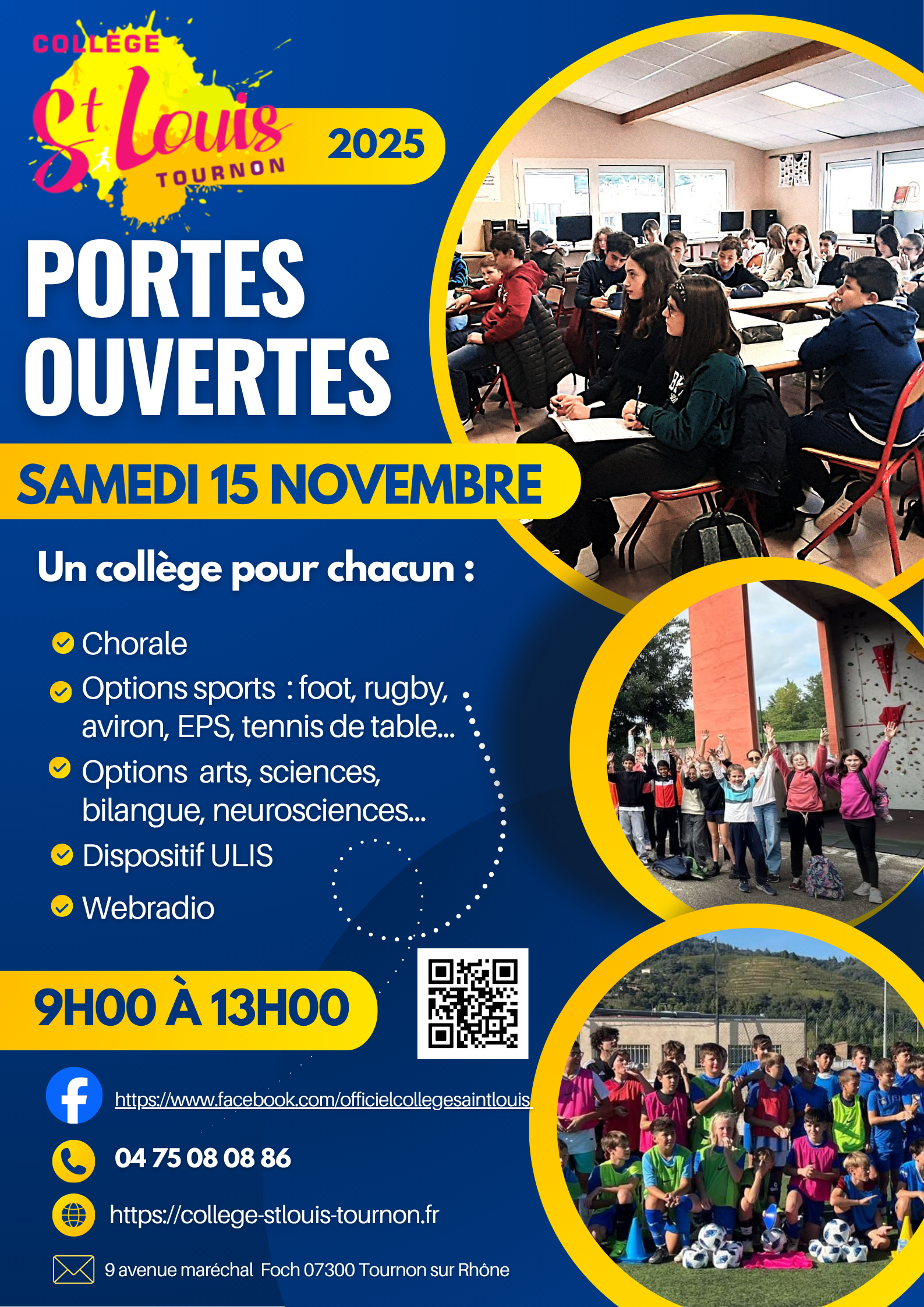 SAMEDI 15 novembre 2025 le collège ouvre ses portes à partir de 9h00 jusqu'à 13h00