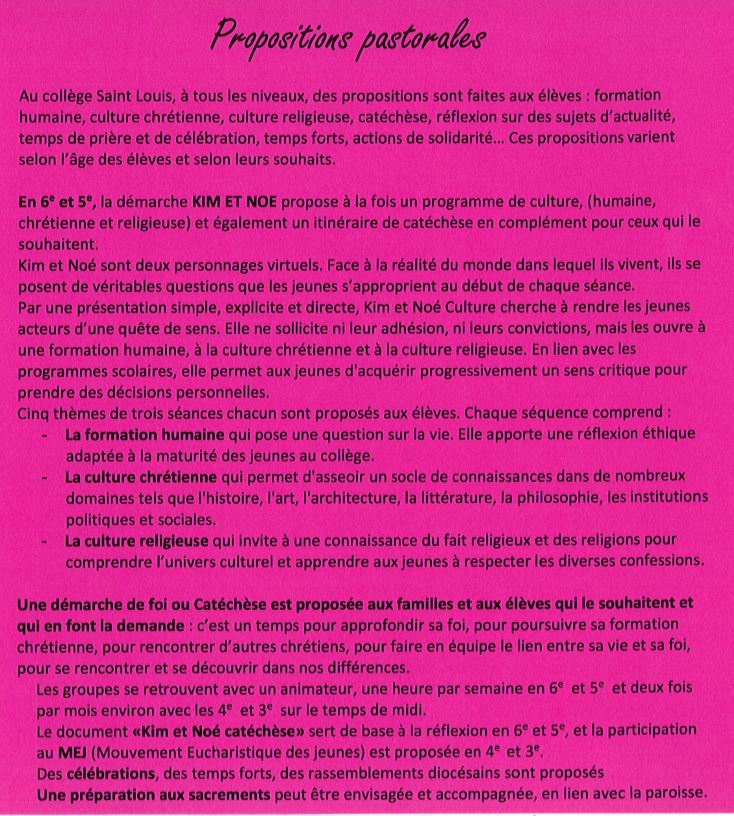 Dans le cadre de sa mission d’Eglise, dans un esprit de tolérance et d’ouverture, le collège Saint-Louis propose :